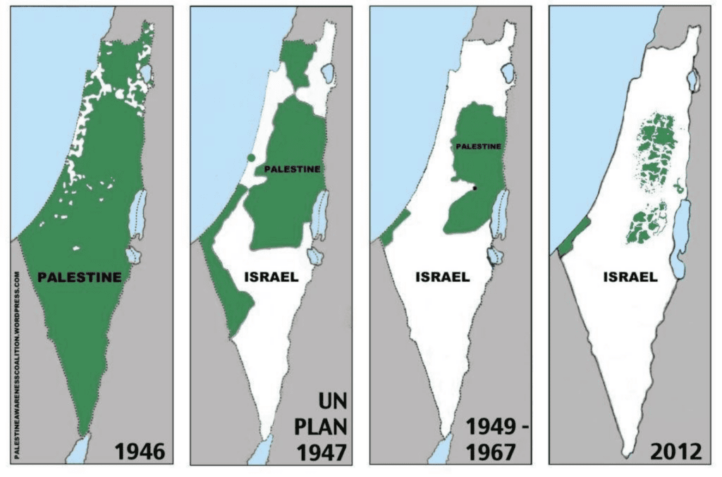 Can you tell me how the Palestinian territory has changed over the years, since 1948?